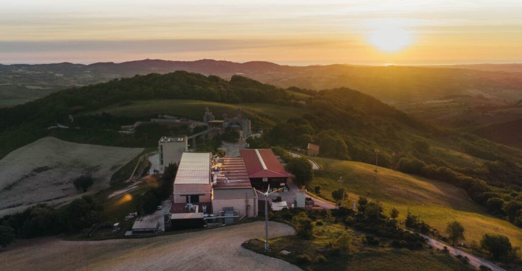 L’idea di Gino era quella di ridare vita a una collina, questa collina, dove lui ha scelto di piantare il seme della sua idea: produrre e trasformare il grano in pasta in un unico luogo. Da qui nasce la storia della cooperativa biologica Girolomoni, con una produzione interna e 100% biologica.