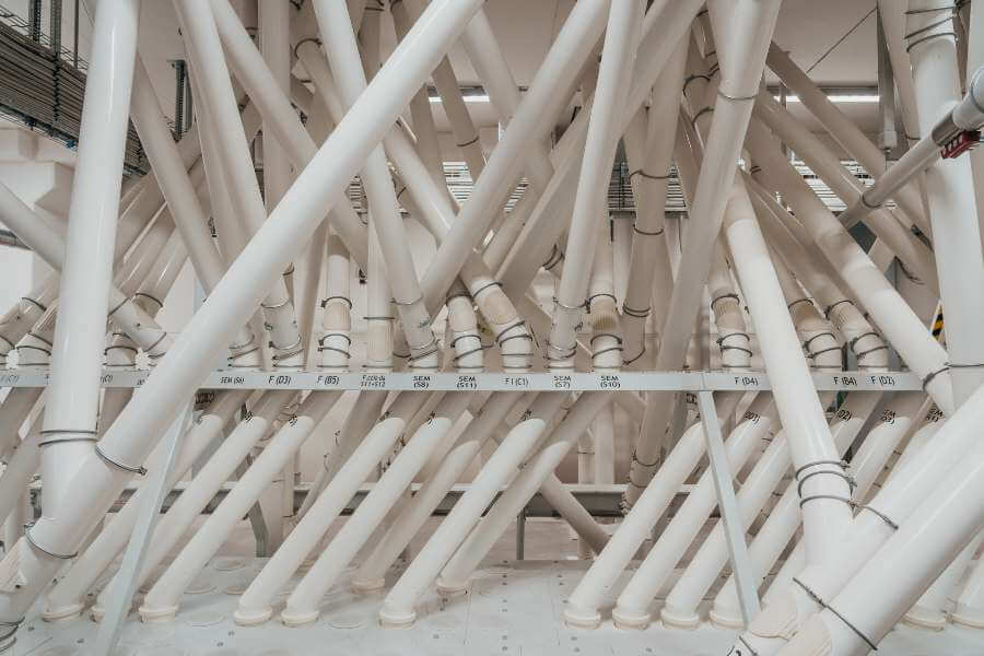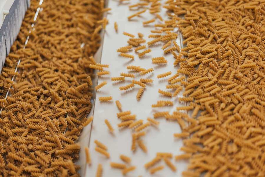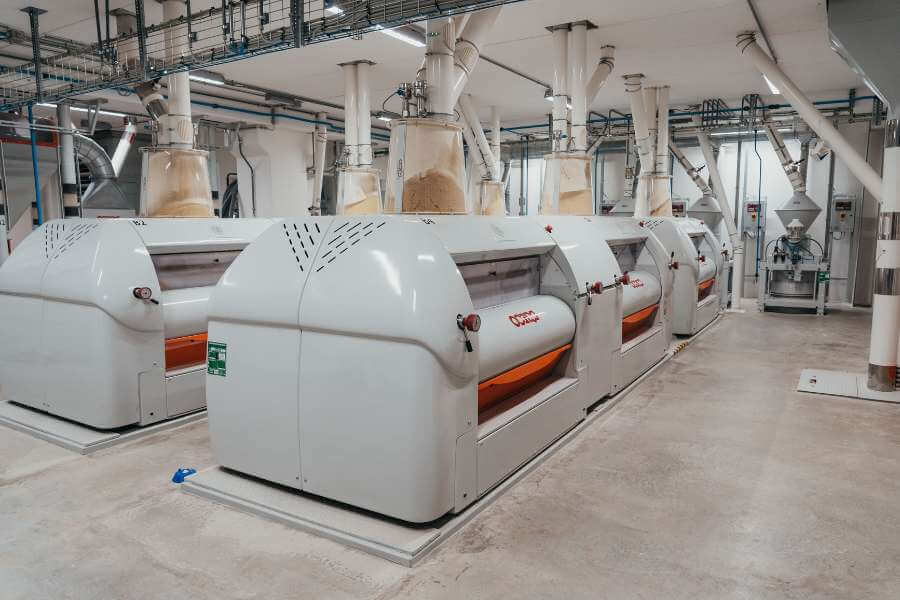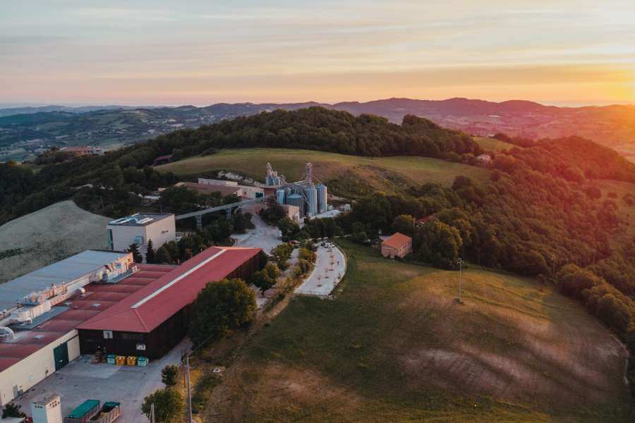 Maciniamo il grano raccolto nel nostro molino sulla collina di Montebello, vicino a Urbino, nelle Marche. La semola così molita viene poi sapientemente impastata con solo acqua di collina nel nostro pastificio adiacente, per diventare infine la pasta biologica Girolomoni che esportiamo in tutto il mondo.