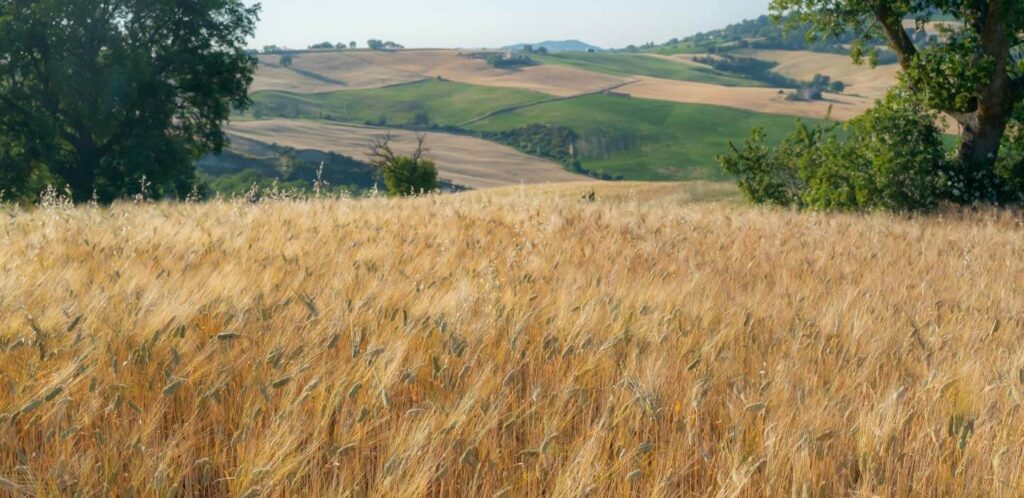 Coltiviamo grano biologico italiano in circa 400 aziende agricole socie, per oltre il 70% da filiera marchigiana