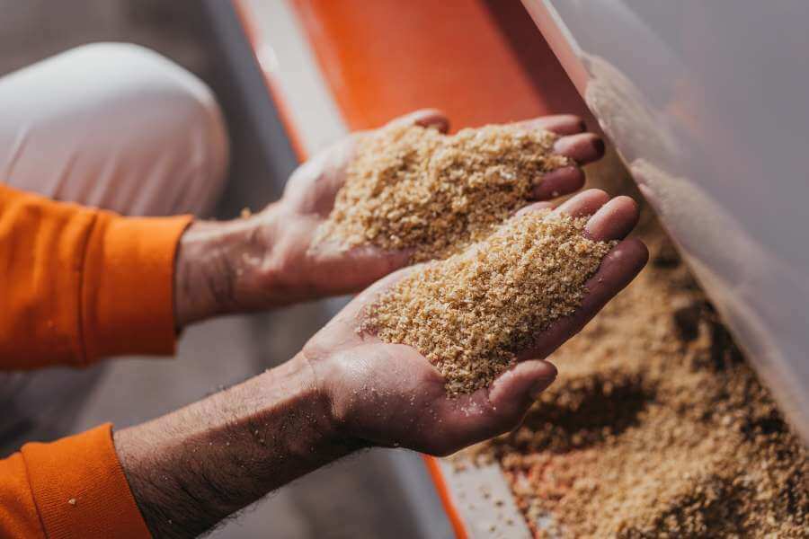 L’essiccazione lenta della pasta biologica Girolomoni può durare dalle 7 alle 12 ore a seconda dei formati, con temperatura media di 65 gradi. Il calore necessario all’essiccazione viene generato da un impianto a biomassa, alimentato da cippato di legno vergine locale.