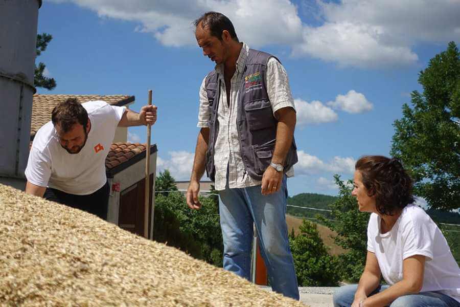 Il viaggio comincia dal grano biologico da filiera controllata. Il grano con cui facciamo la pasta viene tutto dalle aziende agricole socie o affiliate, stanziate in gran parte nel centro Italia e per oltre il 70% nelle Marche.