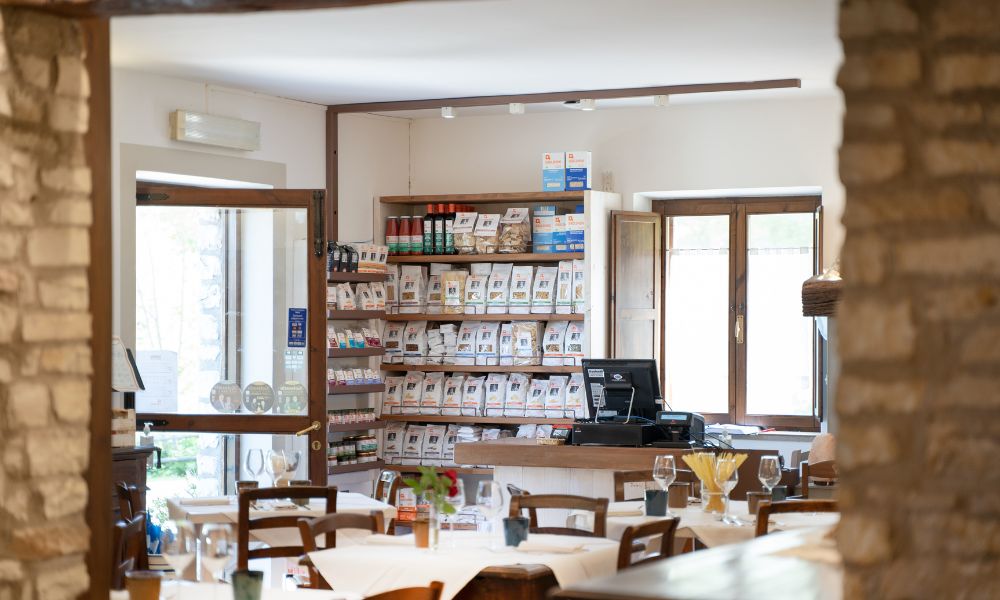 Il ristorante e il punto vendita della Gino Girolomoni Cooperativa sono situati al piano terra della Locanda.