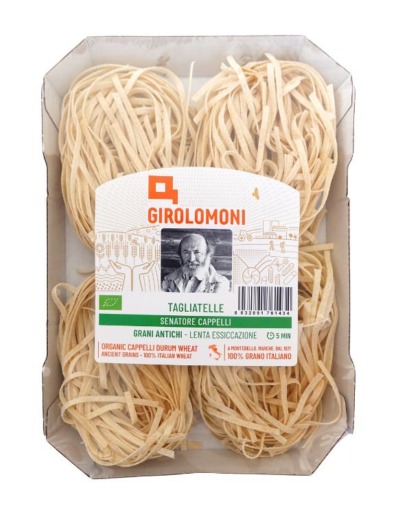 Semola di grano duro varietà Cappelli bio. Può contenere soia e senape.